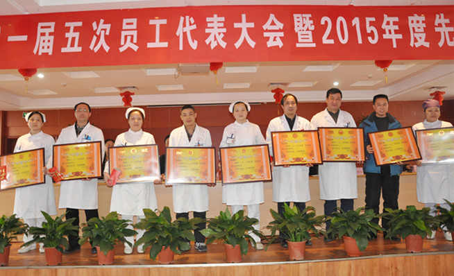 在和谐的气氛中,大会先后表彰了2015年涌现出的先进集体、先进个人。他们赢得会场上的阵阵掌声!三个先进科室代表先后表态发言,表达了大家在新的一年里,将以饱满的热情、坚定的信心、务实的精神、积极进取、扎实工作,为晋升三级医院、开创医院的新局面而努力奋斗!