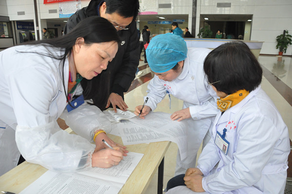 每年的寒假春节期间都是血库的紧张期,临床用血非常紧张。持续的寒冷天气,却丝毫没有影响大家的献血热情。1月21日上午,当印有“无偿献血、无尚光荣”的两辆献血车停在门诊大厅门口的时候,前来参加献血的医务人员早已排队等候。在他们中间,有的是从临床一线抽出时间赶来的;有的身上还穿着手术服,下了手术台就直接过来献血了;有的是休息时间,穿着便服特意来献血的。他们当中有中层干部,普通医生、护士、行政和后勤管理人员,并涌现出了多名献血明星。“李院长就是一名献血大明星呢,每次都能看到他的身影!”市血液中心的工作人员笑着说,李院长的献血本都有好几本了,仅搬迁入新院四年来,他的累计献血量达到了2000毫升了。