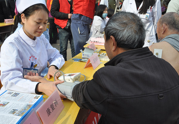 据了解,这次志愿者活动得到全市多家单位的积极参与,医院选派两名医生一名护士来到现场提供免费测量血压、健康知识宣教并为前来咨询的市民解疑答惑。上午,一位大爷因风湿性关节炎致膝关节疼痛,其中康复科医生立即为其进行了现场针灸及艾条熏,三十分钟后患者感到疼痛减轻,效果明显,对着医生连声道谢。