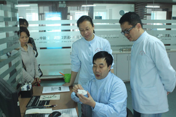 5月9日上午,江西省口腔医院正畸、修复、牙周、口内专业的六名专家莅临口腔科开展义诊活动。正畸专家首先对科室的疑难病例进行了会诊,查阅了CT片和口腔模型,对正畸方案设计提出了指导意见;牙周、口内专家为现场的病人进行了口腔检查和治疗,并提出了进一步诊疗方案;修复专家对科室修复模型制备质量进行了点评。义诊结束后,专家听取了科主任俞星对根管治疗、修复备牙等医疗质量控制情况的汇报并给予了肯定,对科室的医疗质量控制方法提出了宝贵的意见和建议。