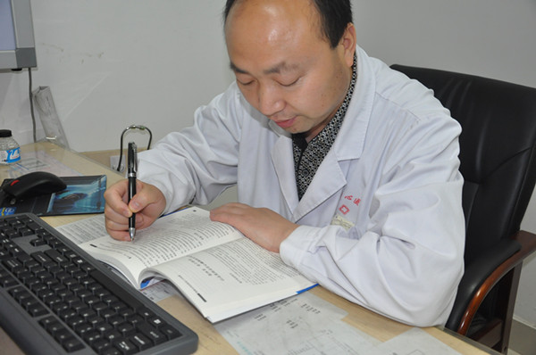 图为门诊部吴主任静心阅读: