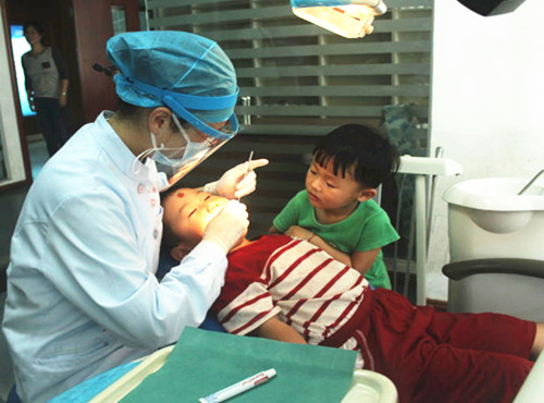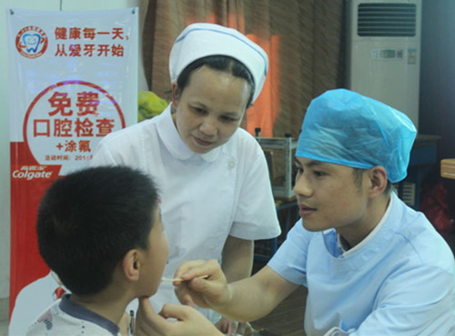 图为涂氟治疗现场:
