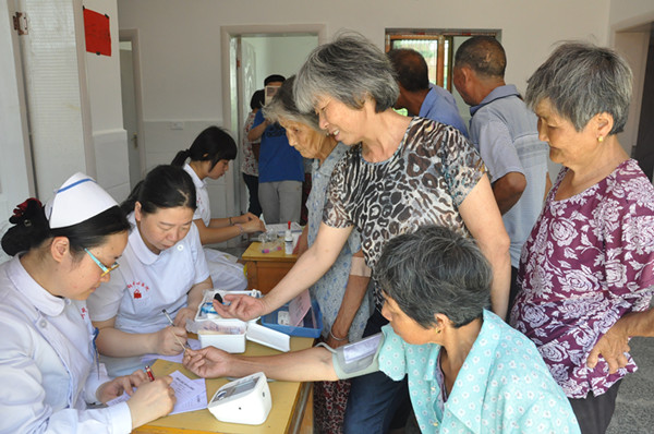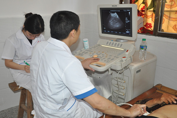 在义诊过程中,党员专家热情接待每一位村民,为他们仔细测量血压、做彩超和心电图检查,传播健康保健知识。闻讯前来的村民络绎不绝,其中留守老人居多,由于交通不便、经济条件等因素,身体一直都是“扛着”,几乎不进医院检查。