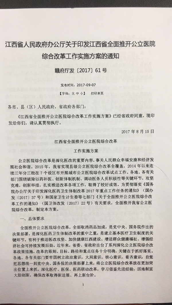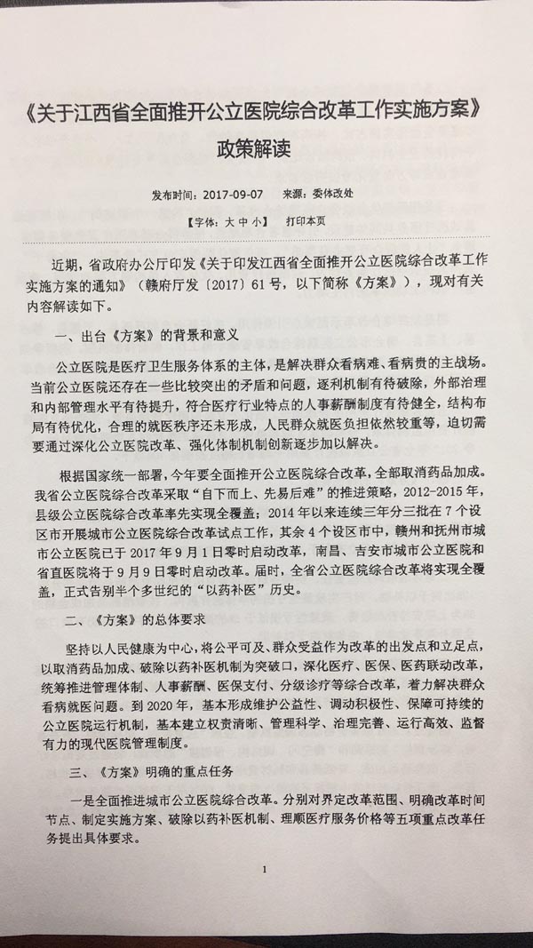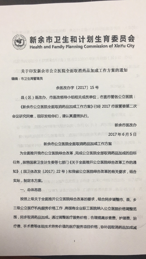 我院将于9月30日之前,参与新余市公立医院综合改革,全面取消药品加成(中药饮片除外)、对医疗服务价格进行调整。