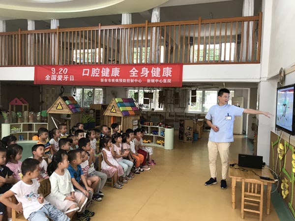 在第29个全国爱牙日来临之际,9月15日,新钢中心医院口腔科医务人员与新余市疾控中心、渝水区疾控中心的工作人员一起分别走进珠珊乡小学、幼儿园,新余市蓓蕾幼儿园开展爱牙日义诊活动。在活动现场,口腔科医务人员为孩子们送上了一堂通俗易懂的爱牙护牙知识讲座,通过生动有趣的讲课和积极有效的互动,孩子们熟练地掌握了口腔健康知识和正确的刷牙方法。讲座结束后,医务人员共为300余孩子进行了口腔健康检查,发放200余健康宣教资料并赠送牙膏牙刷等物品。