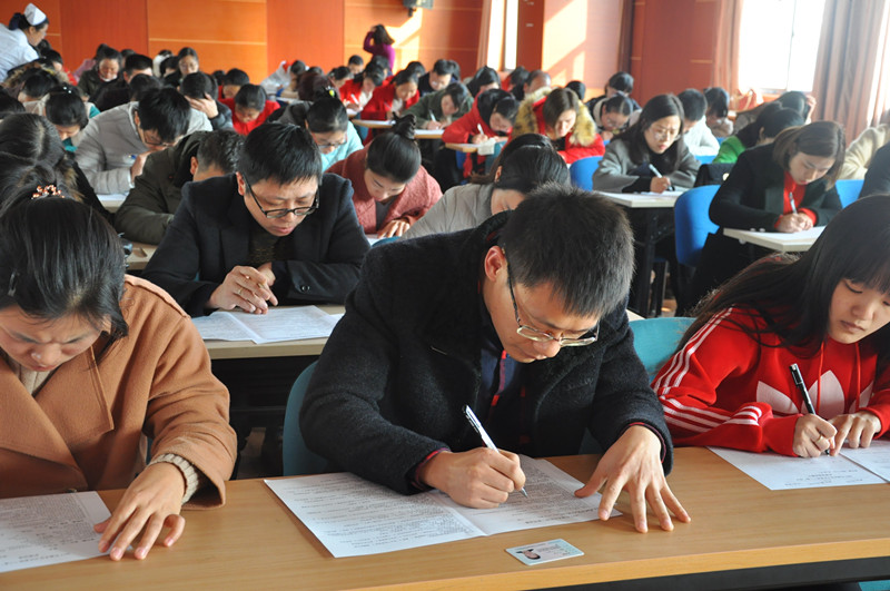 为进一步提升渝水区医护人员三基理论知识,加强乡镇卫生院专业技术人员应对突发事件医疗急救的综合反应能力。近日,渝水区卫生系统技能竞赛在我院顺利举行。图为理论考试现场: