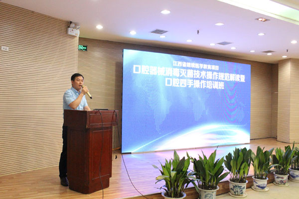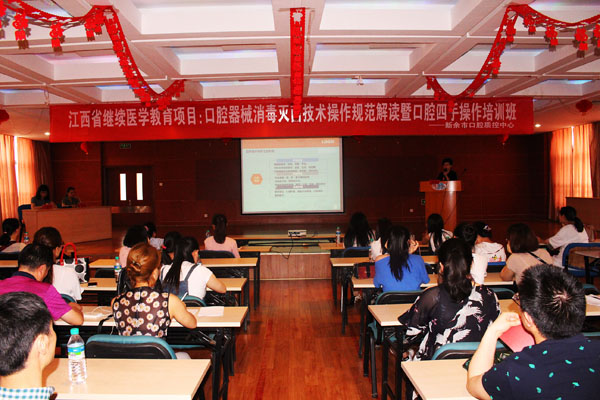 为了进一步规范医疗机构口腔诊疗器械消毒灭菌工作,提高口腔院内感染控制水平。2018年5月26日,由新余市口腔质量控制中心、新钢中心医院主办的《口腔器械消毒灭菌技术操作规范解读暨口腔四手操作培训班》在北湖宾馆会议厅成功举行。