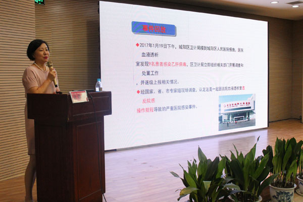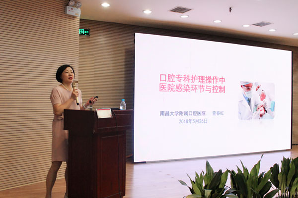 (查春红主任讲述了口腔专科护理操作中的医院感染环节与控制,新钢中心医院口腔科护士长周群为查春红主任颁发感谢状)