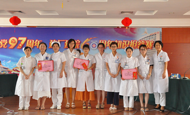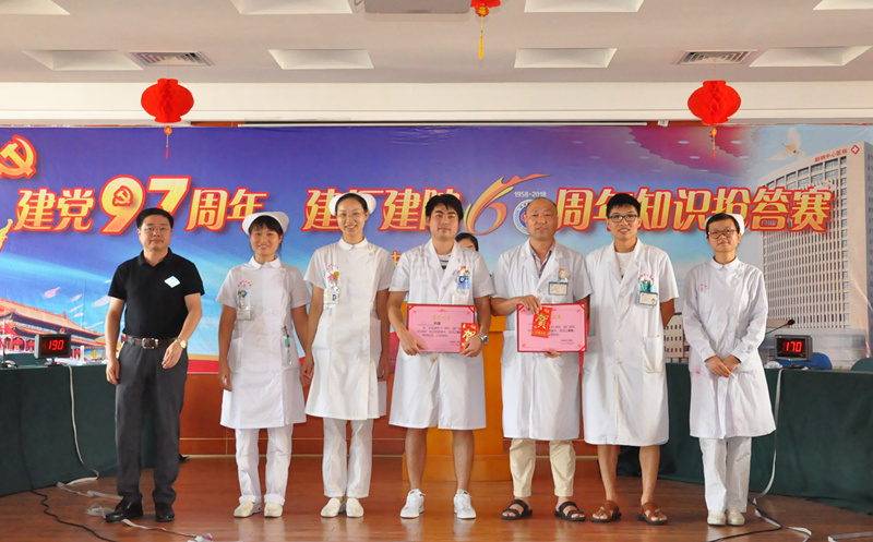 近日,医院党委举办了“庆祝建党97周年、建厂建院60周年”知识竞赛活动。全院5个党支部的36支队伍参加了竞赛,竞赛分为必答题、抢答题、风险题三个比赛环节,中间穿插观众抢答题。竞赛在紧张激烈的氛围中进行,选手们沉着答题,踊跃抢答,激烈比拼。在观众抢答题环节,现场观众踊跃举手,积极参与,不时发出欢声笑语,缓解了场上紧张气氛。主持人幽默风趣、互动全场,让现场氛围既严肃又不乏乐趣。比赛分数交替变化、扣人心弦,经过激烈竞争角逐,药剂科代表队获得一等奖;普外一科、急诊科获二等奖;呼吸二科、检验病理科、康复科获三等奖。