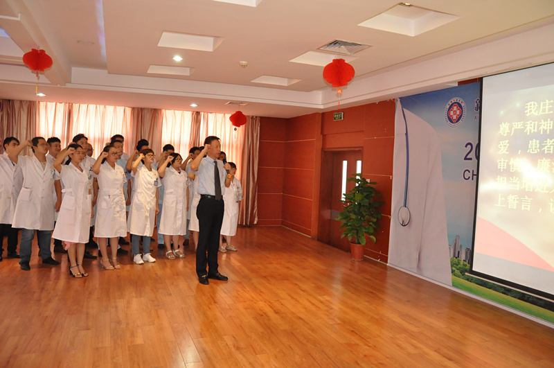 院党委书记彭志群代表医院领导班子,并以一名医师的身份向长年奋战在临床一线的全院医师致以节日的问候和诚挚的祝福。院长李跃程发表讲话说,社会尊医,首先我们要严于律己,努力成为一名“四有”的医师:1、有伟大的职业理想。用自己学到的医学知识,用爱心、用善良、运用美妙的语言艺术去帮助所有的病人,让他们感受到人与人之间的关怀、温暖、真情。2、有自律的批判精神。医生要具备科学客观的态度,不断的接受失败和教训,用虚心与自我批评的态度不断完善自己。3、有系统的思维方法。面对复杂的疾病,矛盾甚至无所适从的治疗方案,完善的思维对于医生解决复合疾病的综合能力提升非常重要。4、有卓越的追求精神。作为一个医生要把每种已诊断明确的疾病都能从技术角度像雕刻一件艺术品一样做到极致和卓越。全院医生应该为选择医学这个职业感到骄傲和自豪。
