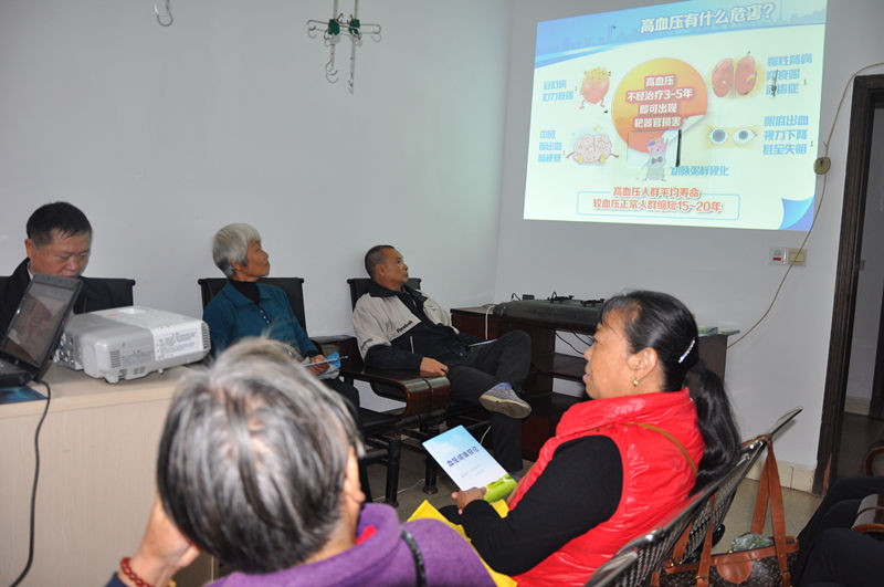 药剂科临床药学团队负责人葛星峰从自身专业出发,将合理用药理念普及到社区。在北村社区现场讲解关于高血压病常见的药物合理使用等,每部分都从百姓认知存在模糊的方面入手,如“高血压药物何时服用最佳”、“保健品是否可以降血压?”、“为什么在药店买的降压药降压效果不理想?”、“生活饮食需要注意的事项”等,引起居民热烈讨论,畅所欲言。葛药师运用通俗的语言,循序善诱地把专业的知识用十分“接地气”的方式传播出去,让居民收益匪浅。