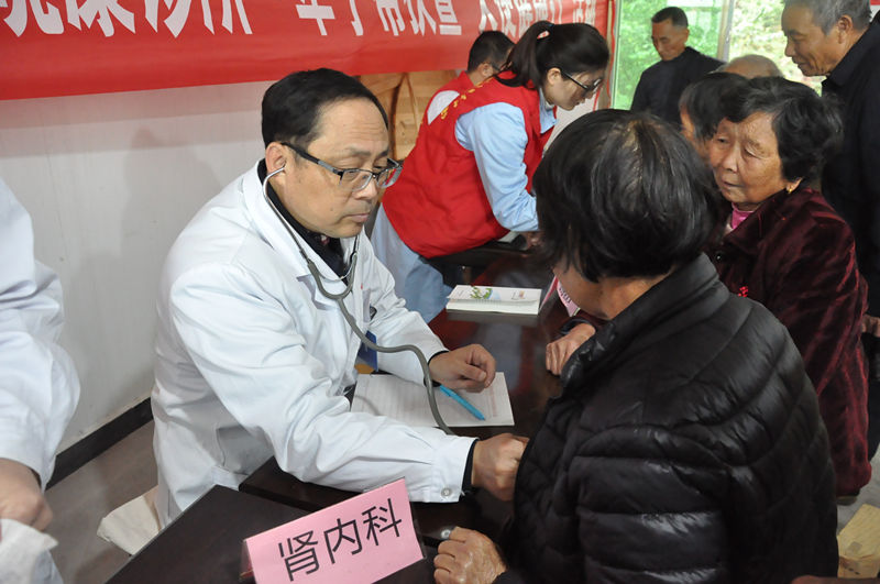 活动当天阴雨绵绵,专家们抵达八百桥村和鹊桥村小康诊所时,现场挤满了来自八百桥村的村民前来咨询就诊。尽管天气灰蒙,环境简陋,但这并没有阻挡医师们的爱心,大家迅速开始为老百姓诊治疾病。他们真诚、热情的服务态度、精湛的医学水平,在这个阴雨天,给群众送上了浓浓的关爱。