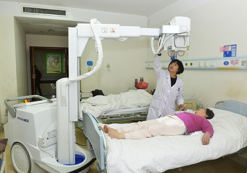 近日,医院引进全市首台移动式DR床旁摄片机,并已投入临床使用。移动DR是一种 将X 线直接转换成技术数字化的移动式 X 线机,有成像环节少,成像速度、图像清 晰快等优点。数字摄影具有极高的灵敏度,密度分辨力高,充分保证了图像的质量,降低患者的重拍 率,提高了诊断率及工作效率;数字图像动态范围广, 宽容度大,因而允许拍摄中的技术误差,即使在一些 曝光条件难以掌握的部位,也能获得很好的图像。医生还可根据需要对图像进行多种后处理,以获得更多的诊断信息。