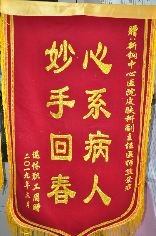 “熊医师的服务态度好、技术也精湛,多亏有她,我才能这么快康复。”近日,患者周老先生亲手将一面印有“妙手回春 心系病人”字样的锦旗送到医院办公室,点名感谢皮肤科主任熊爱君。