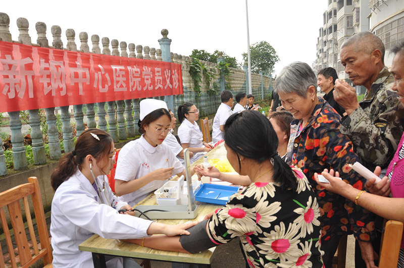 活动现场,来自外科支部和机关支部的骨科、泌尿外科、呼吸科、内分泌科、消化科、B超、心电图等9个专业的10余名党员志愿者,为当地村民免费进行健康咨询、健康指导和病症诊断。