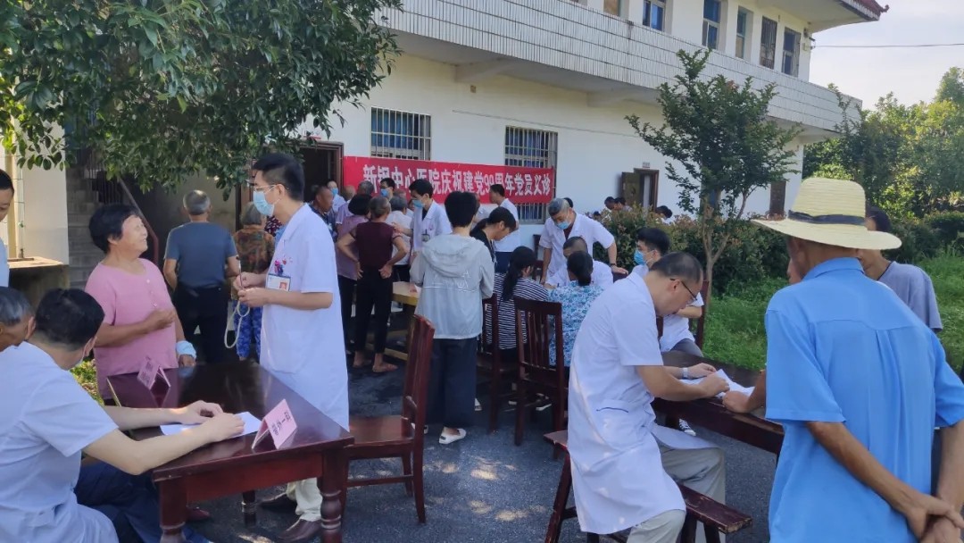 白衣飘,雨相和。7月4日上午,门诊党支部联合外科一支部开展纪念建党99周年主题党日活动, 17名党员前往良山镇垣下村委及良山镇敬老院开展义诊活动,为近一百名村民免费提供测量血压、血糖等服务,并对一些常见病及慢性病的预防和治疗进行答疑解惑。前来咨询问题的居民络绎不绝,其中一居民说道:“义诊活动不仅让我享受到了在家门口就医的便利,还提高了我们的健康保健意识,必须为新钢中心医院点个大大的赞。”党员义诊送真情,此次活动既增强了党员服务群众的意识,也充分发挥了我院党员在基层服务中的先锋模范作用。