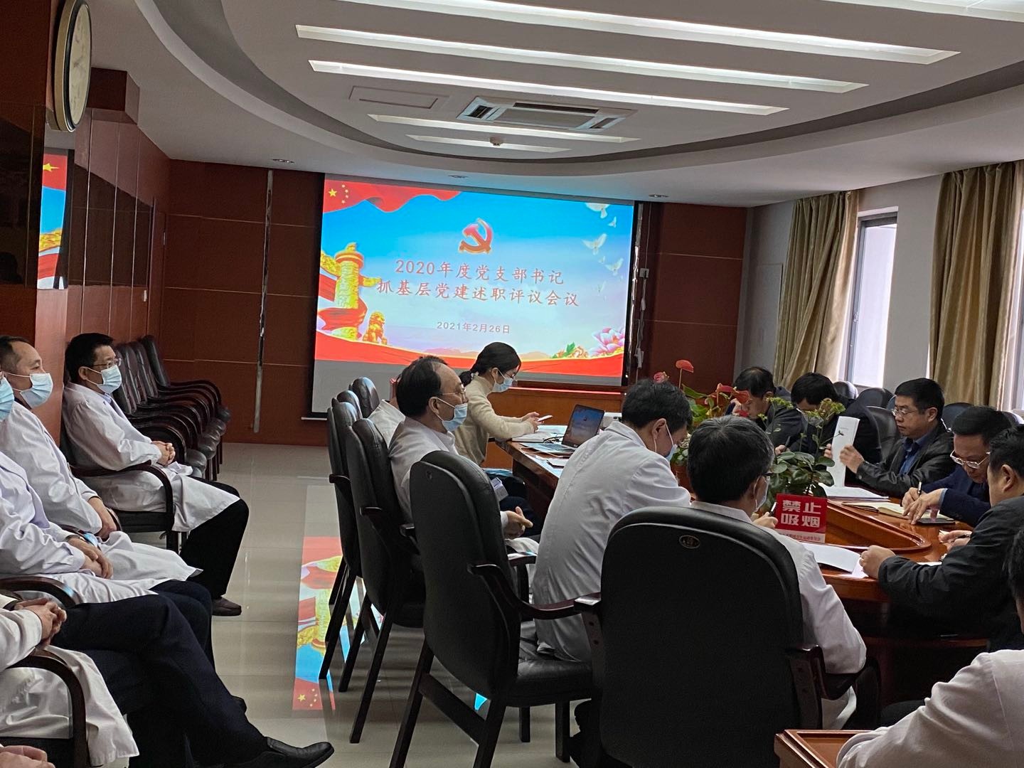 2月26日下午,医院 在行政楼四楼会议室召开2020年度党支部书记抓基层党建述职评议会议。院党委书记彭志群主持会议,院长黄强、副院长赵学辉、杨志浩、肖艺水出席会议并作点评讲话,党委委员吴小金、邱景平,各党支部书记、职工代表参加会议。