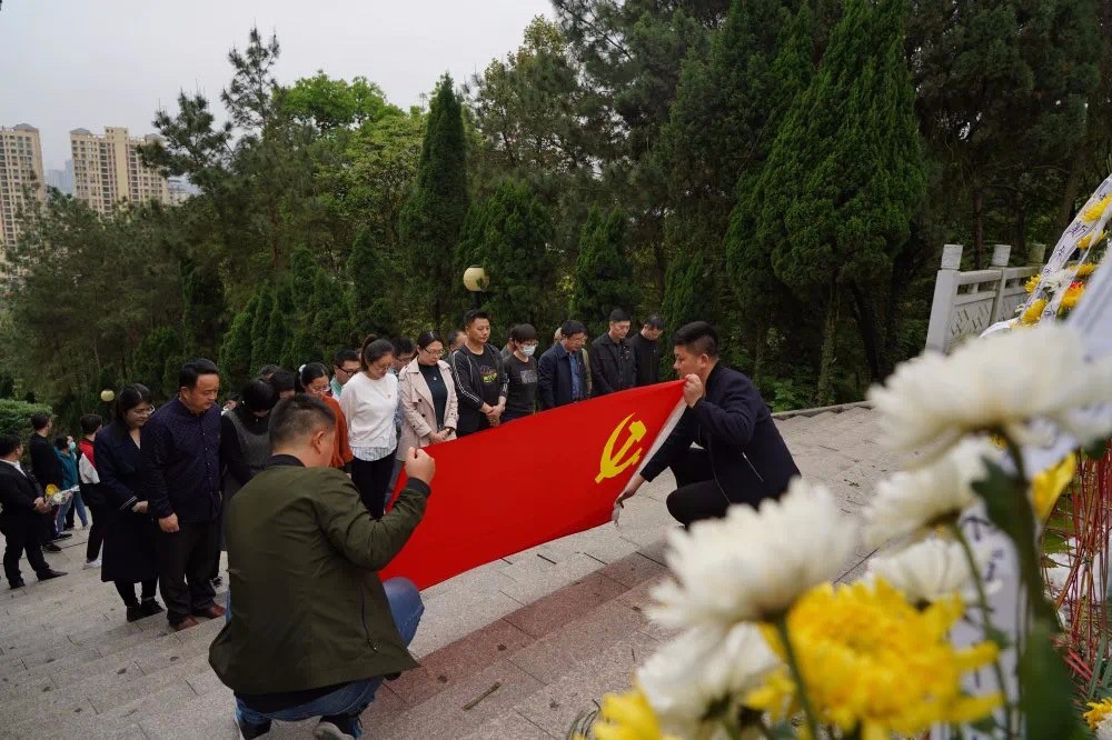 全体党员、发展对象、入党积极分子在肃穆的烈士碑前肃立默哀,院党委书记彭志群、支部书记魏文中代表向烈士敬献鲜花,朵朵鲜花纯洁无瑕,表达大家对烈士的崇高敬意。