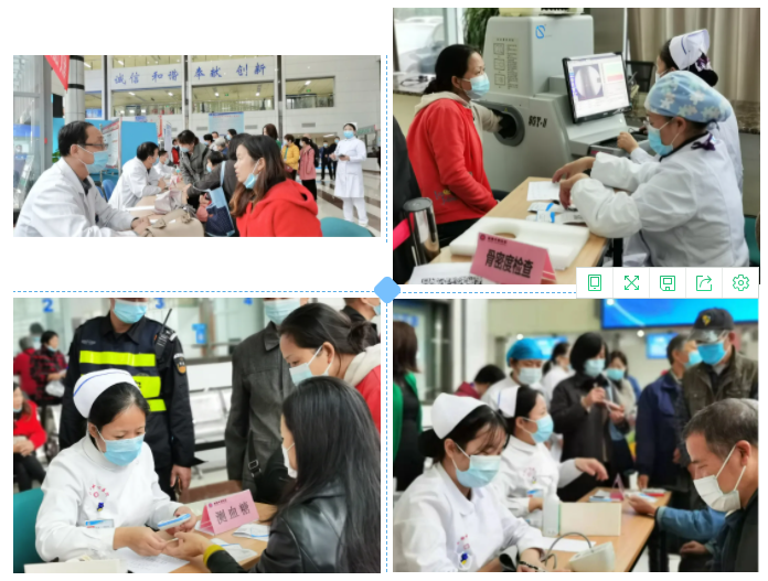 活动现场,由骨科、全科医学科、肾内风湿免疫科、内分泌代谢性疾病科、体检中心等科室组成的医护志愿者为患者提供了健康咨询、骨密度检查、测血压、测血糖等免费医疗服务。