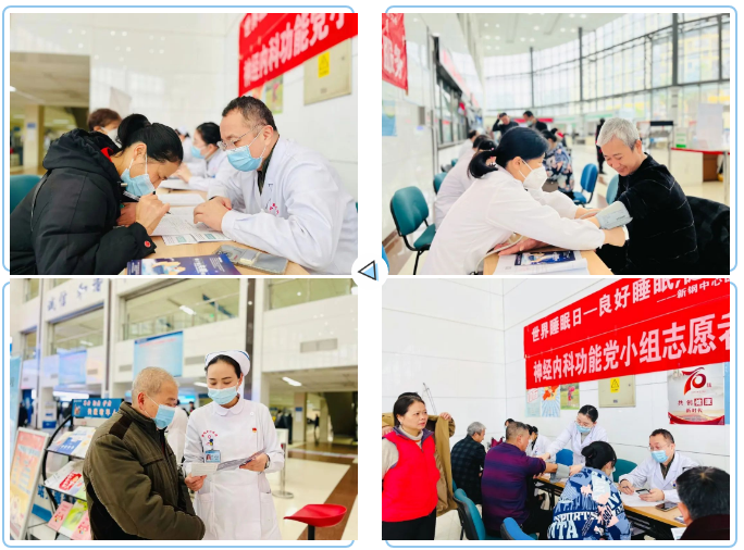 3月21是世界睡眠日,今年的主题是:良好睡眠,健康之源。为宣传和普及健康睡眠知识,提高广大市民对睡眠健康的认识,神经内科医护团队在门诊一楼大厅开展了“好梦入睡”义诊活动。