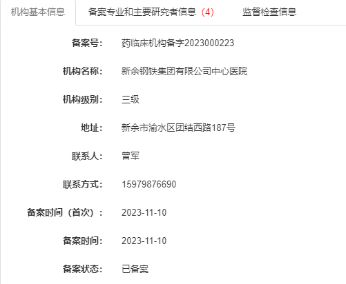 我院2023年完成药物临床试验机构备案工作,机构、伦理和2个专业科室(肿瘤科和呼吸科)通过了省药监局组织的现场检查,备案号为“药临床机构备字2023000223”。 国家药物临床试验机构办公室作为临床试验机构运营管理的枢纽和日常管理部门,负责承担项目管理、合同与经费管理、质量保证和质量控制、档案管理及项目协调员/项目助理(CRC)管理等。药物临床试验组织管理机构管理人员组成:机构主任1名、副主任1名,均具备本科或本科以上学历、高级职称,经过了药物/医疗器械临床试验质量管理规范及临床试验技术技能、伦理审查等相关培训。机构办公室人员组成:机构办公室主任1名、机构办公室秘书1名、质量管理员2名、药物管理员2名、档案管理员2名。
