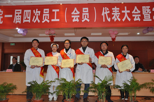 在和谐的气氛中,大会先后表彰了2014年涌现出的先进集体、先进个人。他们赢得会场上的阵阵掌声!四个先进科室代表先后表态发言,表达了大家在新的一年里,将以饱满的热情、坚定的信心、务实的精神、积极进取、扎实工作,为推动医院科学发展、开创医院的新局面而努力奋斗!