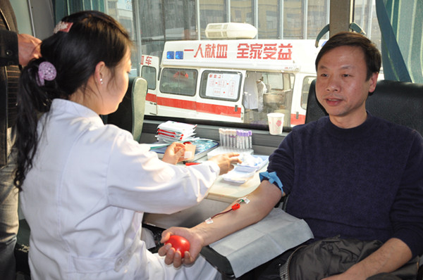 献血工作得到了院领导的大力支持与鼓励,一年两次的医务人员献血工作,院长李跃程每次都必到现场参与献血,并为前来献血的同仁们鼓劲加油,是一名名副其实的献血“达人”。在他的感召下,献血队伍中有中层干部,普通医生、护士、行政和后勤管理人员、进修生,涌现出了多名献血达人。大家献出的不仅是一袋袋的血液,更是一份对生命敬重的真情,为再一次缓解“血荒”,给力!