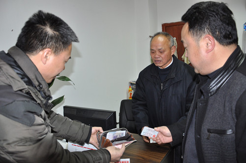 图为医院办公室、保卫科同志如数归还钱物给失主