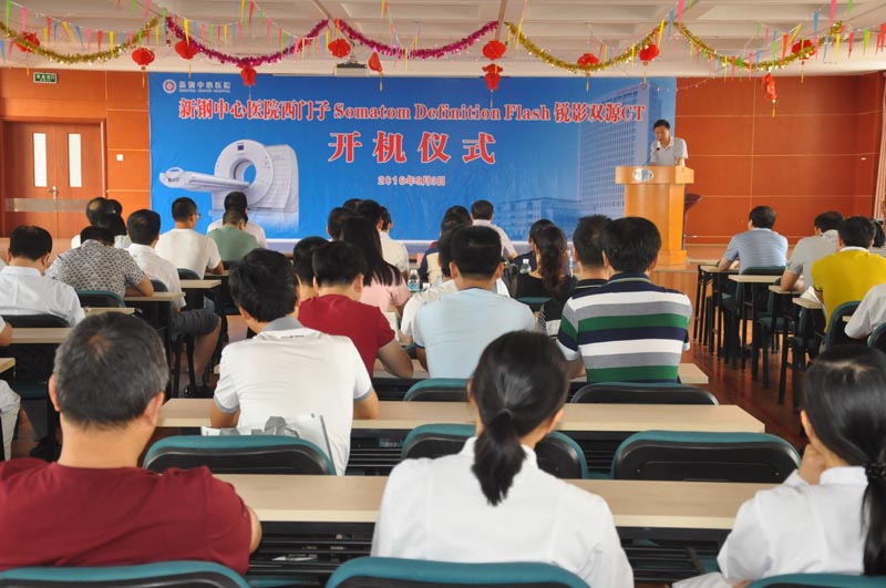 院长李跃程在讲话中表示,近年来,新钢中心医院紧跟医改政策,以人性化、现代化设计理念,建设新院区,办现代化医院,为社会服务,为患者提供更加快捷、高效的医疗服务。刚过去的“十二五”,医院成功晋升为三级综合医院;医院实现信息化,陆续开发应用了HIS系统、LIS系统、PACS系统等。医院的医技科室也取得突飞猛进的发展,医学影像科作为“医学的侦察兵”更是获得优先发展的地位。医疗设备是衡量医院水平的重要标准,是保障临床诊疗的重要手段,是开展高新技术的重要法宝。截止到目前,医院放射科设备总价值近5000万元。而CT又是众多医疗设备中的核心设备之一,我院CT也在不断的更新换代。1992年,引进新余市首台CT;2005年3月率先引进多排螺旋CT,引领新余市医学装备水平不断发展;2016年6月,引进西门子