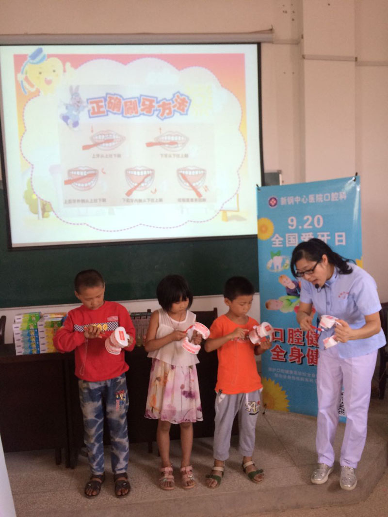 为关爱留守儿童,关注偏远乡村儿童口腔健康,让口腔健康与儿童共同成长, 9月14日下午,新钢中心医院携手新钢公司侨联、新余市侨联、新余市疾控中心前往新余市高新区马洪办事处的祖昌侨心小学开展“口腔健康,全身健康”爱牙护牙活动,为孩子们送去一堂爱牙知识的盛宴。