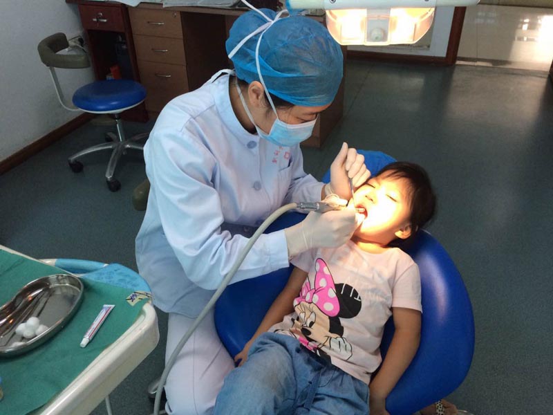 图为活动第五站——口腔科免费涂氟治疗: