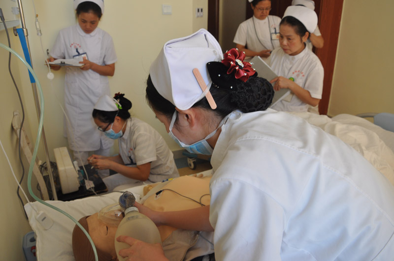 今年的护理操作考试旨在提高护理人员的应急业务能力,考试不再是命题形式,而是抛出一个具体病例,参赛人员经过简单分析病情后,在规定的时间内针对患者病情实施及时有效的操作技术及正确的健康知识教育。这就要求护理人员首选能准确判断病情,同时要求采取先急后缓的护理措施,再是能准确的为患者实施此项技能操作。通过改变比武方式,有效提高了医护人员的应急能力,可以更好地提高临床实际工作中的危重患者抢救成功率。
