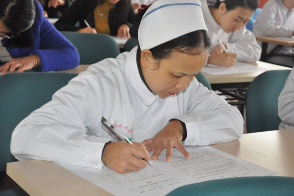 全院护士充分利用业余时间积极备考,考试现场促进护理人员增强学习意识,提高护理水平和业务能力。扎实的理论知识是确保护理质量的首要因素,才能更好地服务于病人。近年来,该院通过“以考促学”的为目的,合理制定培训考核计划,不断加强和巩固护理队伍基本功的训练,把“三基三严”作为提高医务人员业务素质的基本途径和提高医疗质量的重要环节,督促护理人员理论学习的积极性,形成良好的学习氛围,不断提高护理服务质量,进一步提升全院服务水平。