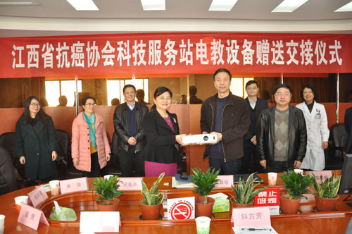 江西省抗癌协会前来医院赠送科技服务站电教设备