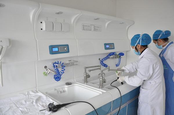 图为护士正在先进的清洗设备上清洗支气管,院感无小事,护士洗的很认真