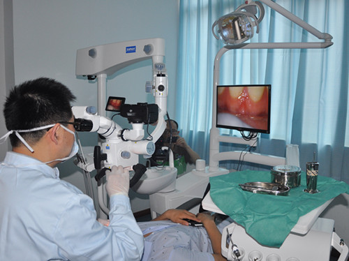 由于牙齿的根管形态复杂,医生无法发现细微的结构变异,例如根管壁处理得是否光滑、根管的形态、根尖的情况、根管壁是否侧穿、根管内折断器械的位置等,过去只是靠医生的经验和手感来做粗略的判断,而显微镜可以使医生做得十分精细。另外,早期的龋坏、隐裂和微漏等肉眼难以发现的病变,在显微镜下却一目了然,使口腔疾病漏诊率大大降低。在口腔修复方面,借助显微镜视野明亮以及可以变倍放大的作用,可以使医生修复技术做得更加精细。