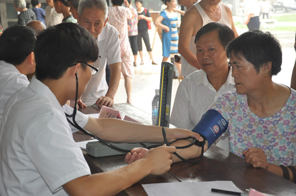 7月1日,院党委组织肾内科、心内科、五官科等11名党员专家驱车来到新余良山镇社区广场为居民义诊。义诊过程中,前来咨询检查的老人络绎不绝,医务人员认真为老人们做检查、量血压,耐心地向他们介绍健康知识和用药方法。