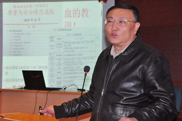 1月14日下午,六楼多功能厅内坐无虚席,会场鸦雀无声,只听到赣南医学院一附院副院长、主任医师、硕士研究生导师、博士后、江西省知名骨科专家高辉院长宏亮而带有风趣的声音为全体医务人员讲述一场《告诉你不一样的院感管理》知识讲座。他用浅显易懂的语言,结合自身丰富的学习阅历,利用图文并茂的PPT课件,全面系统的针对近年来国内外院感现状、处置流程及预防措施进行了详细讲解,深刻阐述了什么是医院感染,如何科学防控院感,并通过大量生动详实的案例分析,阐明了医院感染暴发的危害性及做好院感工作的重要性。