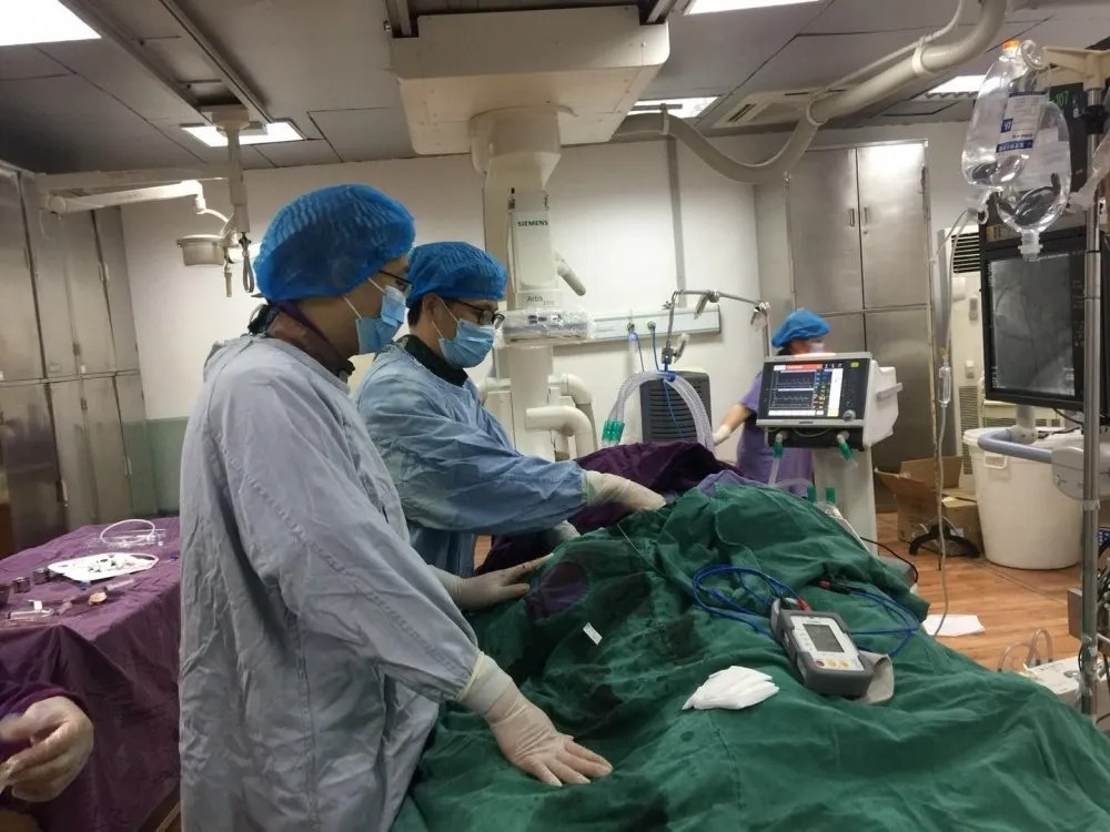 情况万分危急!是继续胸外按压,等待南昌大医院专家携带ECMO(体外膜肺氧合)前来支持,还是放弃抢救……医生和家属同时陷入两难的境地。体外心肺支持系统从南昌送过来至少需要2个小时,患者没有自主心跳,通过人工按压的心肺复苏能否坚持到仪器的到来还是未知数,就算有幸坚持到体外心肺支持的到来,成功建立了心肺循环,维持了生命,但患者能否成功清醒又是一个极大的挑战!肖艺水心里清楚,患者急性心肌梗死,意味着患者的心脏供血血管被血栓堵塞,不抽掉血栓、恢复正常心脏供血,患者就不能恢复正常心跳。在各指标均无法满足正常手术要求的状况下,冒险进行手术治疗,将心脏血管中的血栓取出,取出血栓后心脏恢复血供,停跳的心脏将可能会恢复到正常工作状态,但这样做的成功率微乎其微。