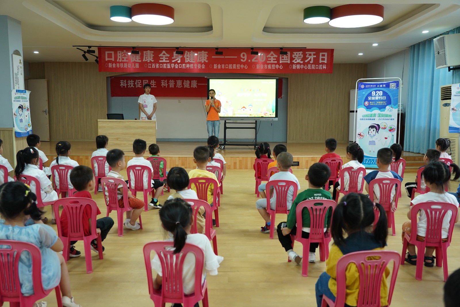 在第32个全国爱牙日来临之际,为增强幼儿的护牙意识,丰富幼儿的爱牙知识。医院口腔科、江西省口腔医学会口腔种植专委会、新余市口腔质控中心、新余市疾控中心携手新余市铁路幼儿园开展了此次爱牙日主题活动。