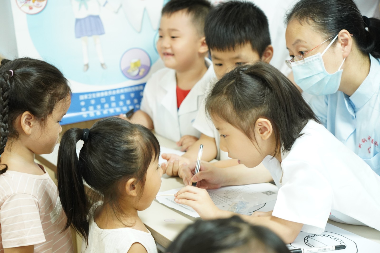 通过医院口腔科的培训,幼儿园保健医生把爱牙知识纳入了课程。教小朋友们少吃甜食,饭后漱口,早晚刷牙,掌握正确的刷牙方法,幼儿园老师们还带着大班小朋友们开展了换牙调查活动。
