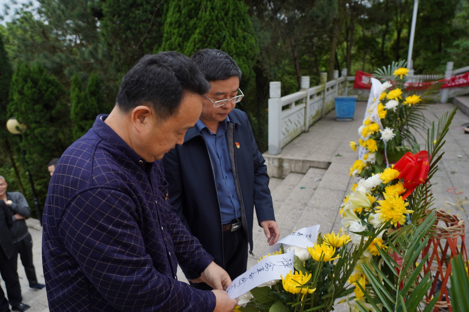 全体党员、发展对象、入党积极分子在肃穆的烈士碑前肃立默哀,院党委书记彭志群、支部书记魏文中代表向烈士敬献鲜花,朵朵鲜花纯洁无瑕,表达大家对烈士的崇高敬意。