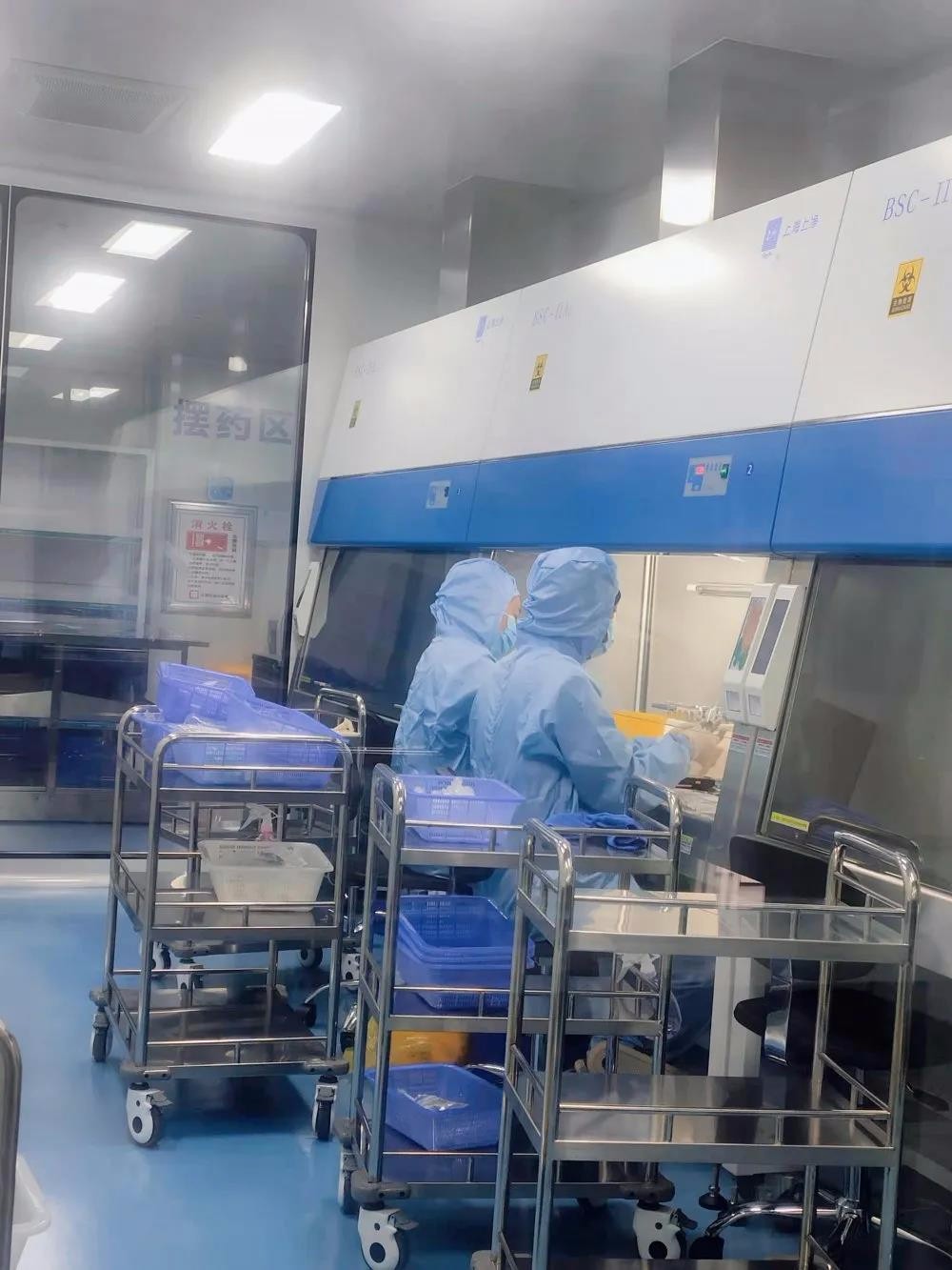 完成调配工作的洁净区:拥有6台先进的百级水平层流净化工作台,用于普通药物和肠外营养液的配置;BSCIIA2百级生物安全柜4台用于调配抗生素类药物;BSCIIB2百级生物安全柜1台专供细胞毒药物的调配。