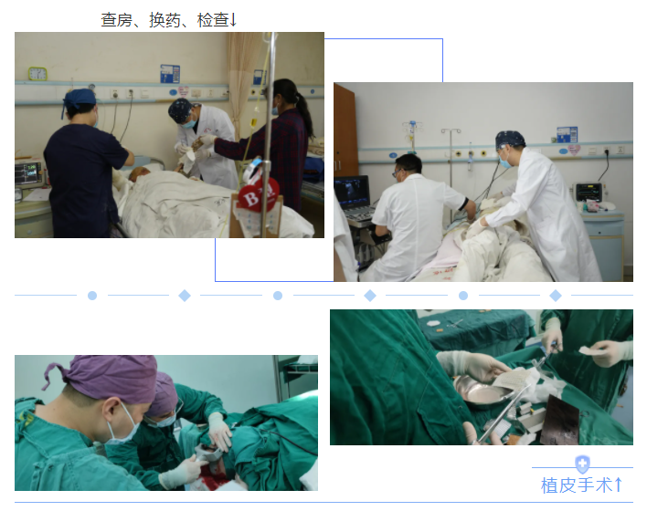 烧伤面积达80%的李先生体液流失严重,立即予深静脉穿刺进行补液抗休克,24小时不间断地补液,抗感染、抗休克、改善循环、营养支持、维持酸碱平衡及电解质平衡,全体医护人员竭尽全力对李先生进行救治。为更好的监护患者的各项指标变化,帮助其平稳的渡过休克关和感染关,烧伤科主任温珍华连续350个小时坚守在岗位上,24小时密切关注患者的生命体征变化。