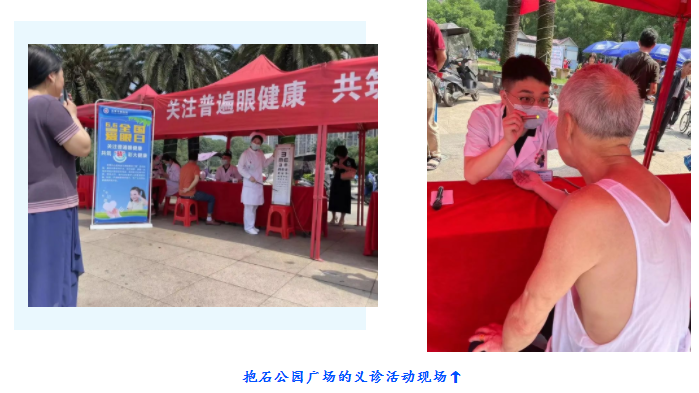 当天上午,眼耳鼻喉科的医务工作者,在抱石公园广场参与了主题为“关注普遍眼健康,共筑‘睛’彩大健康”义诊活动,为近百名市民提供了免费咨询诊疗服务。