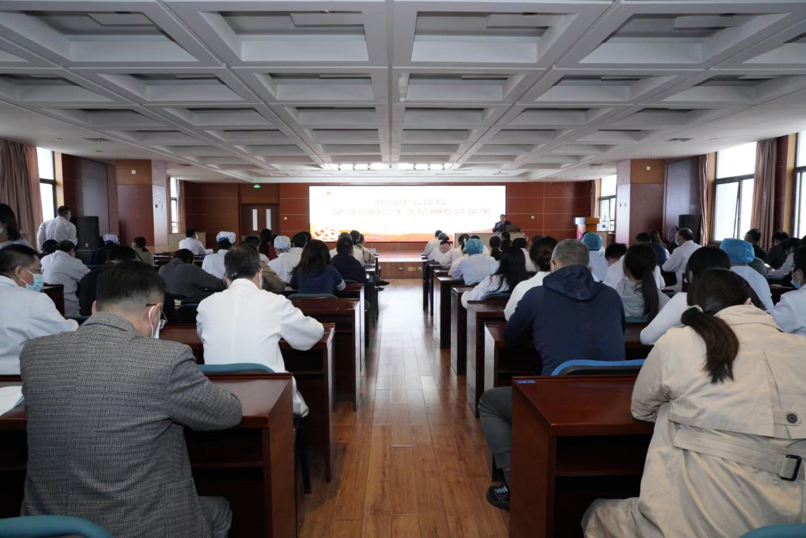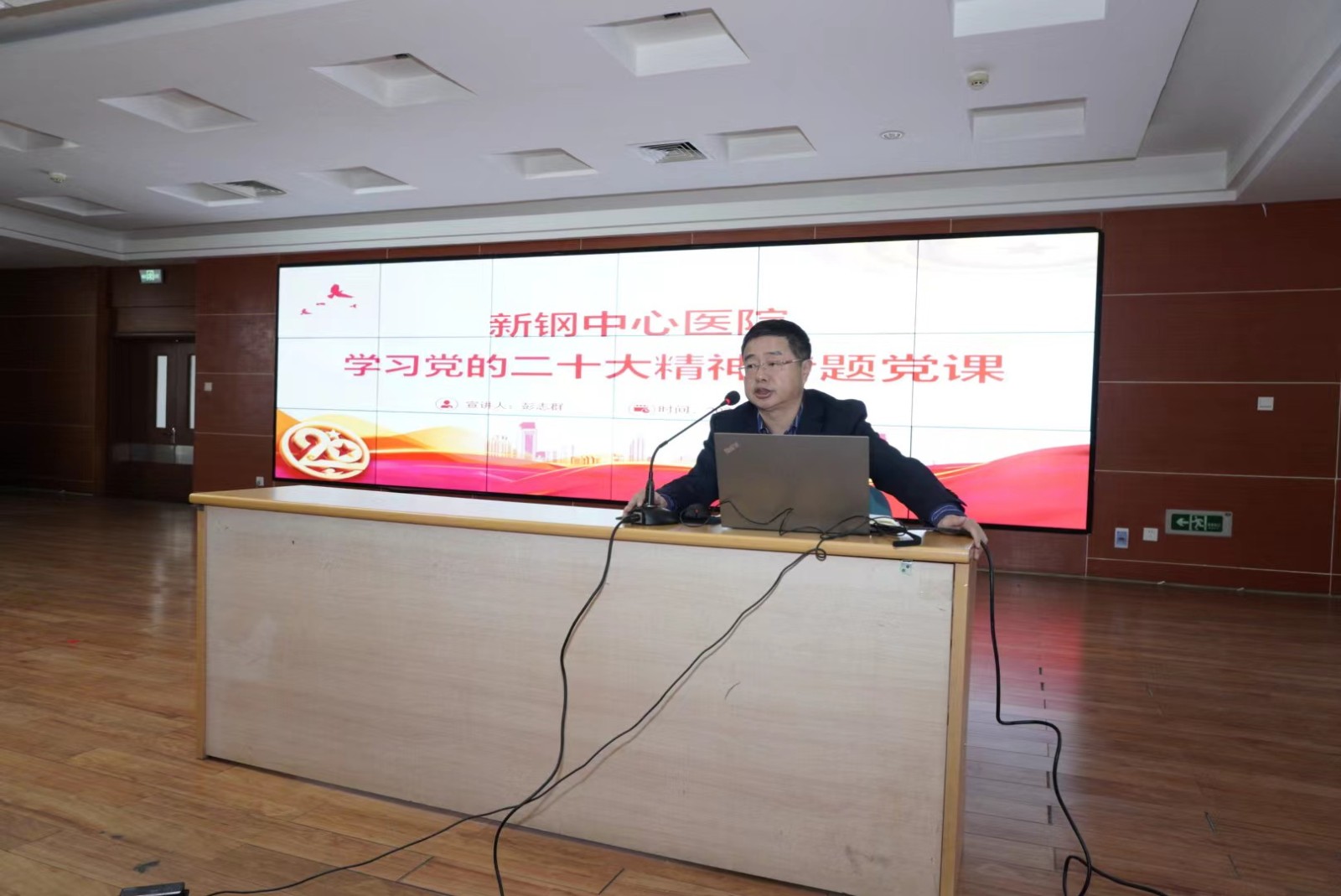 11月17日下午,院党委在行政楼六楼召开“学习党的二十大精神专题党课”,由医院党委书记彭志群同志授课,全院176名党员听取党课。